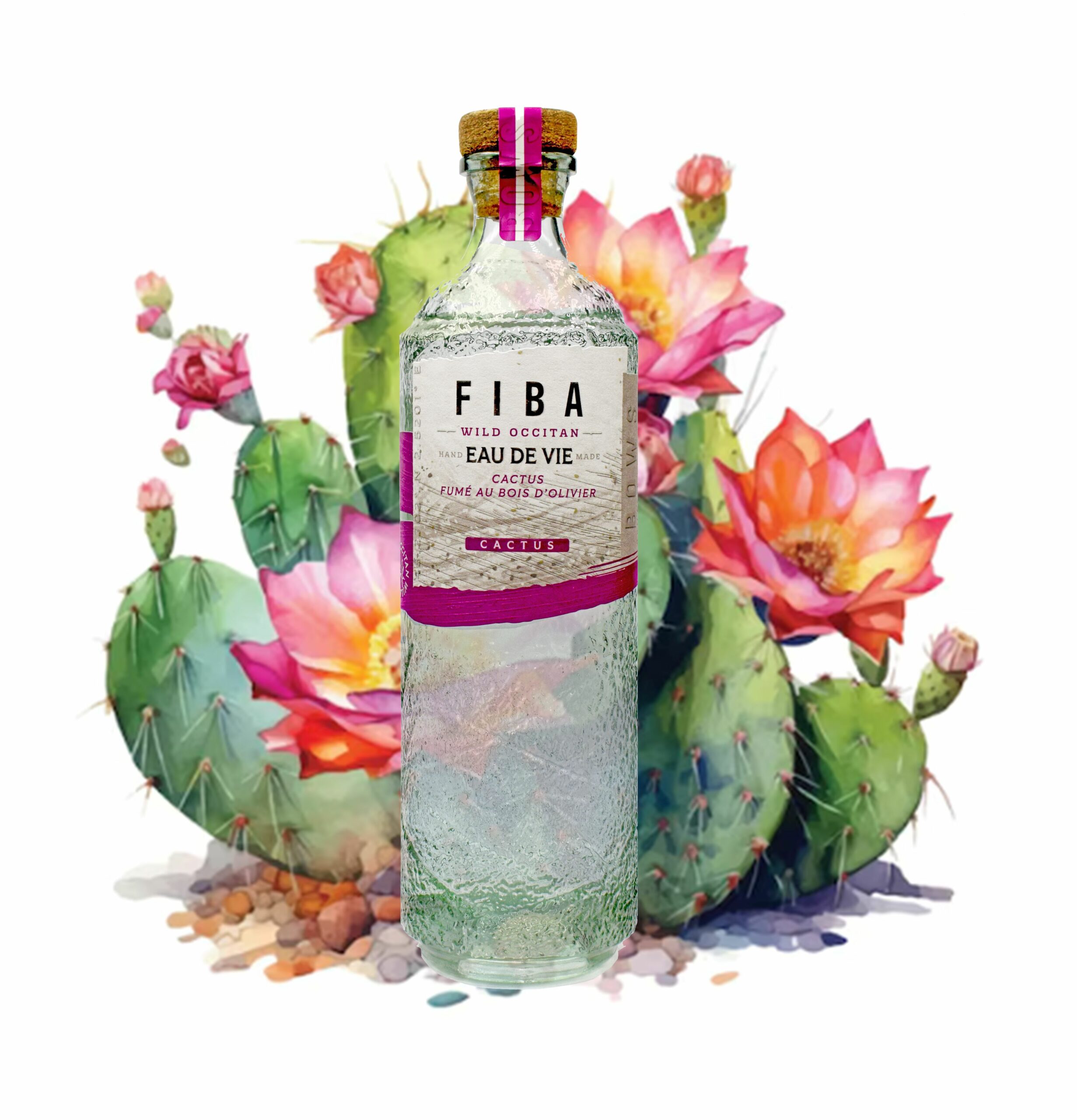 FIBA naît là où les oliviers veillent, immobiles sous le vent, et où les cactus dressent leurs silhouettes patientes vers le ciel. Des chairs de ces plantes solaires, doucement fumées au bois d’olivier, s’élève une âme liquide : un alcool de cactus qui évoque la tequila et le mezcal, mais ne ressemble qu’à lui-même.